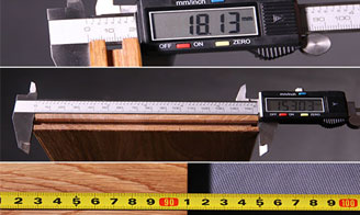 02实际测量这款地板的尺寸为:长910mm,宽153.03MM。厚18.13mm