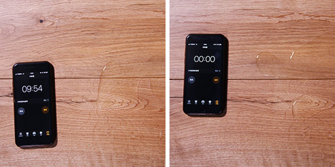 将重量500g、底部光滑的砝码静置于30°倾斜的地板上,砝码仅有轻微滑动,足以见得好运地板的这款产品在防滑性能上表现优异。