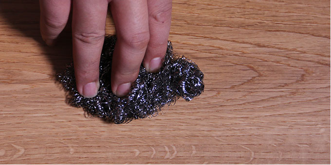 用钢丝球对地板表面进行反复刮擦,地板表面无明显刮擦痕迹,木蜡油未出现破损刮花现象,耐磨性能优异。
