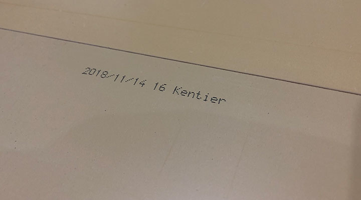 木板背面印有喷码标识,清楚标识了产品的品牌、批号、生产时间等相关信息。每一块肯帝亚超级地板背面都带有这样的喷码标识,以便质量追溯。