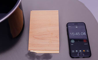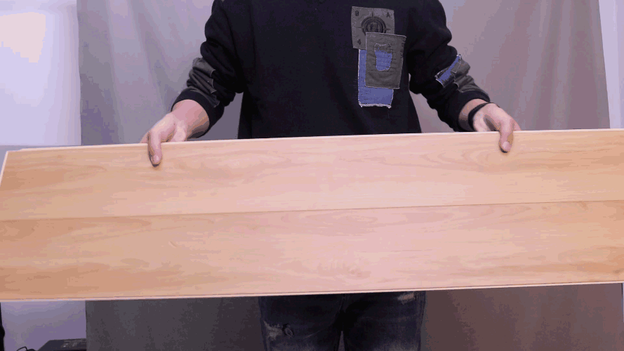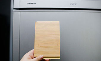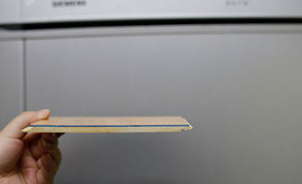 切割出0.65x10x15.5cm的肯帝亚超级地板作为样本。