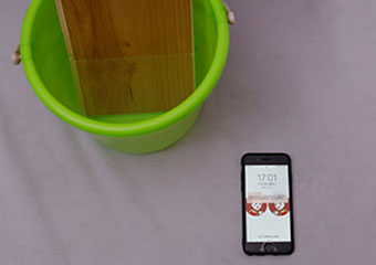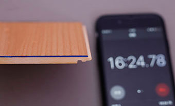 我们将两块它牌的地板与肯帝亚超级地板一端抬高至同一水平高度,洒上水,在三块地板的最上端放置同样的塑料片,它牌地板上的塑料片下滑速度更快。经对比实验,肯帝亚超级地板防滑性能非常独特,遇水后不会打滑。