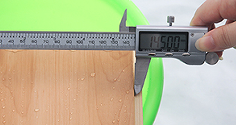 为了检测肯帝亚超级地板的吸水厚度膨胀率,我们对地板进行了水泡实验。实验开始前,记录地板的宽度为145mm.