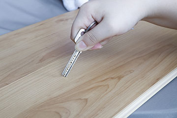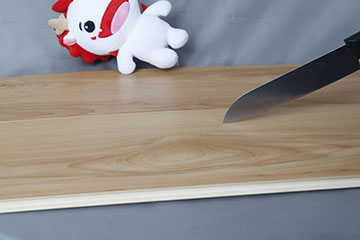 超级地板的漆膜紧紧锁合在材料表面,形成了强有力的保护层,成年女性分别用钥匙、剪刀和水果刀在地板表面来回摩擦剐蹭,均未留下刮痕。据了解,超级地板在耐磨性能上提升到普通地板的2倍,耐磨级别高达10000转以上。