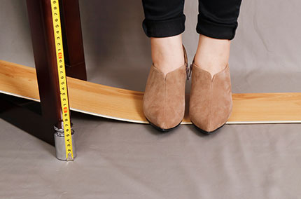 将超级地板分别架在10cm和25cm高度的物体上,体重为50㎏的成年女性站立在上面,超级地板自然弯曲并回弹,表现出超级柔韧性。超级地板采用创新柔韧回弹科技,特设柔韧回弹层,全面保卫生命安全。