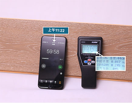 为了检测这款地板的甲醛释放情况,将地板静置于密封空间,初始测量值为0.017mg/m³,一个小时后,测量到数据为0.017mg/m³,说明1小时内,大友地板这款新三层橡木地板样品甲醛量未检测出。2个小时后,测量到数据为0.017mg/m³,说明2个小时内,大友地板这款地板样品甲醛释放量未检测出,得出这款产品环保性能优异。
