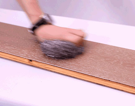 ①、用钢丝球在地板上摩擦,面板表面无明显白色刮痕。