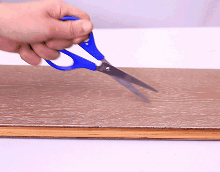 ②、用锋利剪刀在地板上刮划,面板五明显白色刮痕,可充分满足日常生活要求。