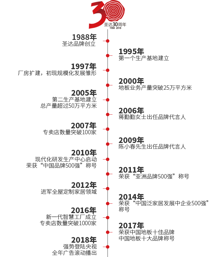 30年风雨兼程,30年携手共进,30年感恩回馈。在30周年到来之际,圣达也于2018年9月17日-10月27日隆重推出了“双节同庆,圣达三十年”大型优惠活动,以此答谢新老客户对圣达30年以来的支持与信任。希望下一个10年、20年、30年……,圣达依旧践行“让人人都能享受健康的家居环境”这一光荣使命,服务大众。