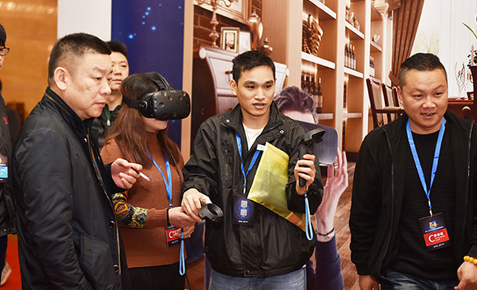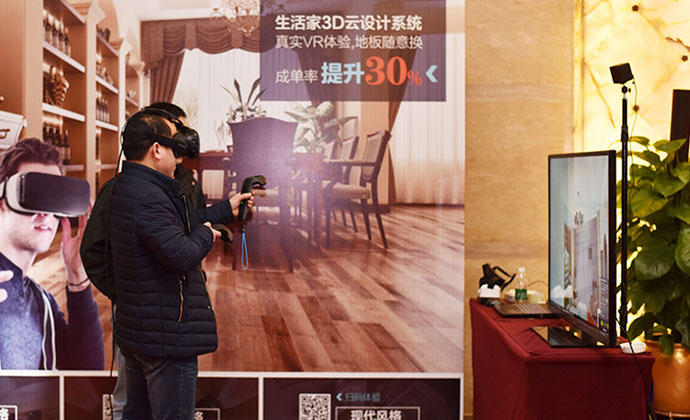 在终端推进3D云设计系统,利用大数据快速为消费者设计出满意的产品铺装效果图;VR体验系统,让消费者更真实的体验铺装效果,提前遇见你的家。