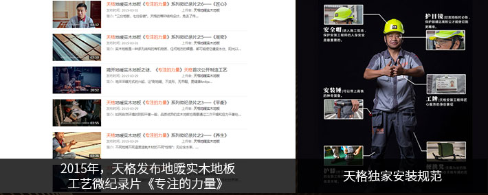 培育一个新兴品类需要全行业的共同努力,所以天格并没有囿于一己,将地暖实木地板的工艺技术秘而不宣,而是将其向全行业无私公布。2015年,天格发布地暖实木地板工艺微纪录片《专注的力量》,向行业无私公布地暖实木地板生产工艺秘诀,受到行业领导和同仁的一致夸赞。正是在天格不遗余力地推动下,近年来,80%的主流地板品牌相继加入地暖实木地板品类的生产销售中,年增长率超30%,是整个地板行业平均发展速度的6倍以上。