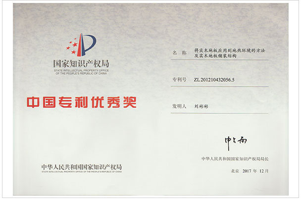 2017年12月,天格凭借“将实木地板应用到地暖环境的方法及实木地板铺装结构”专利,荣获第十九届“中国专利优秀奖”。此次大奖,正由于天格将系列专利技术融会贯通,于2002年打破“实木地板不能应用于地暖环境”的行业难题,进而发明了“地暖实木地板”这一中国原创地板品类,并全力推广,使其成为“美好生活”的重要元素,实现了理论创新和产品普及双重突破的贡献。中国专利奖是我国专利领域的最高奖项,由国家知识产权局设立,是我国唯一的专门对授予专利权的发明创造给予奖励的政府部门奖。这一奖项的获得,权威证明了天格作为地暖实木地板品类发明者的地位,也是国家对天格地暖实木地板在创新方面的最高褒奖和肯定。