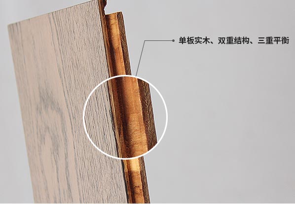 新三层实木地板采用3+2的布局,延续了多层实木地板层层纵横叠压的互锁结构,实现了单板实木、双重结构、三重平衡保障,通过纵横互锁的力学结构,有效释放木材内应力,保证地板稳定不变形,且每一层含水率均得到合理控制,让地板的稳定性更佳。