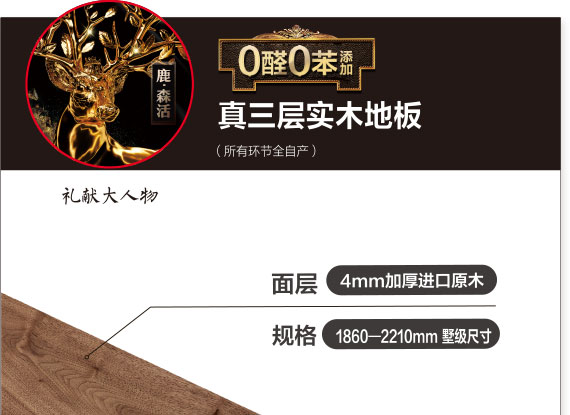 鹿可可0醛0苯添加真三层实木地板采用纯正欧美油漆工艺,9底3面UV漆,有效原木原生态质感更显高端视觉审美,通过国际SGS权威机构检测:甲醛、苯、重金属都为“未检出”,媲美原木天然环保。