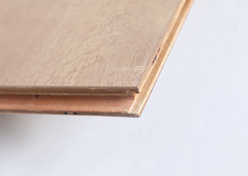 小编在拼接后的两块地板间洒上水,待静置半小时后再擦干,地板拼接处无明显渗水,拆开后亦无水渍浸入,整体地板依旧平整。红木枋科技新实木地板采用3+9+3独特纵横交错的结构,使得地板具有更好的稳定性能,也让地板的防水防潮性能更加优异。
