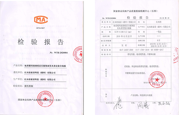经国家林业局林产品质量检验检测中心测试,红木枋科技新实木地板的甲醛释放量为0.045mg/m³,远低于标准要求,环保水平十分优异,家装铺贴更放心。